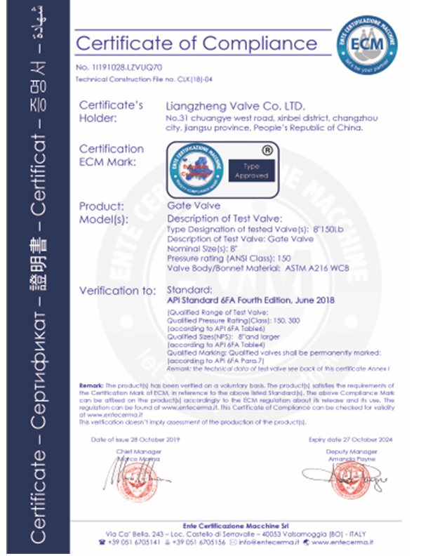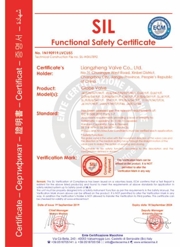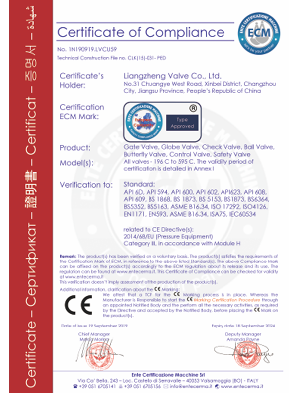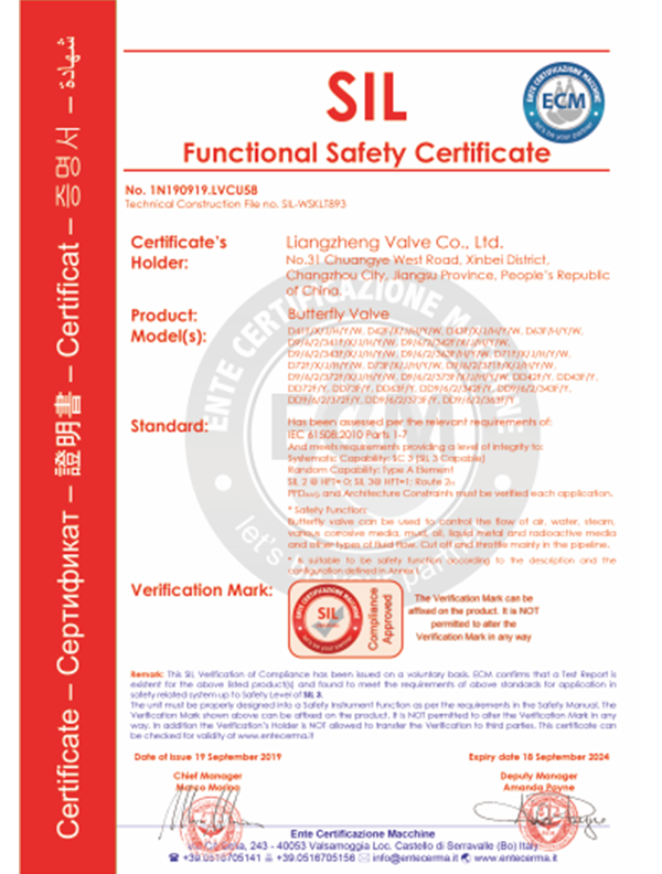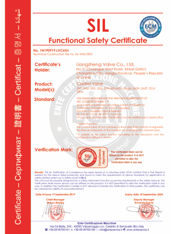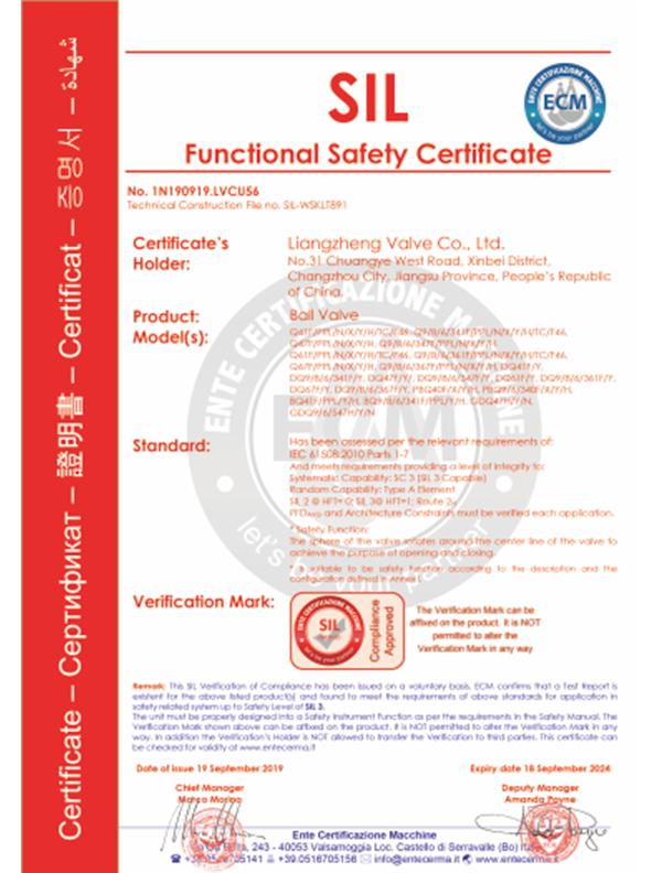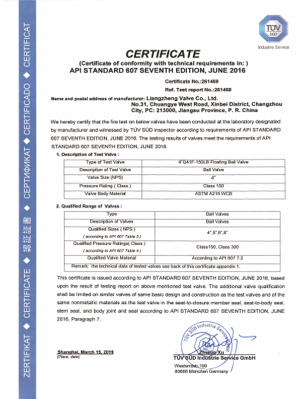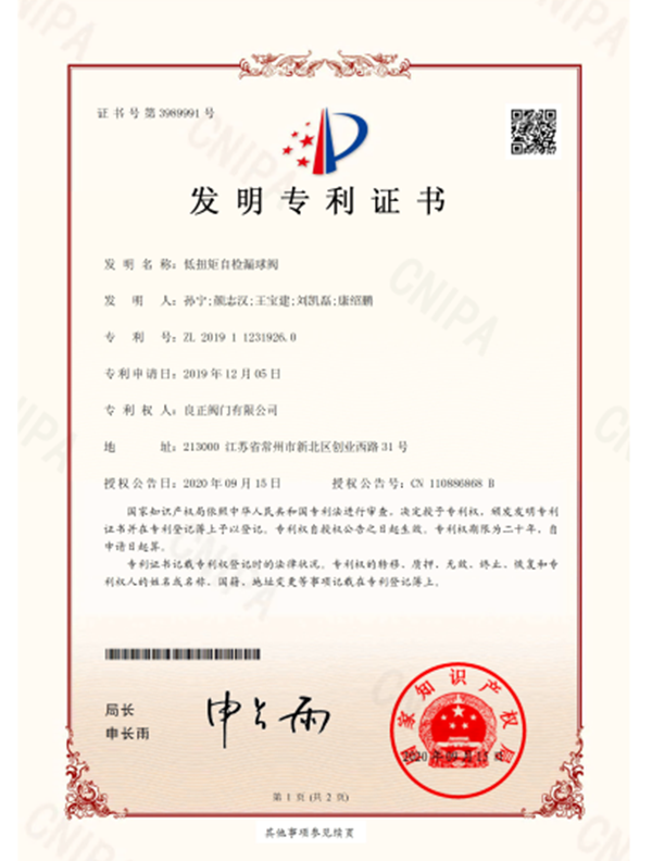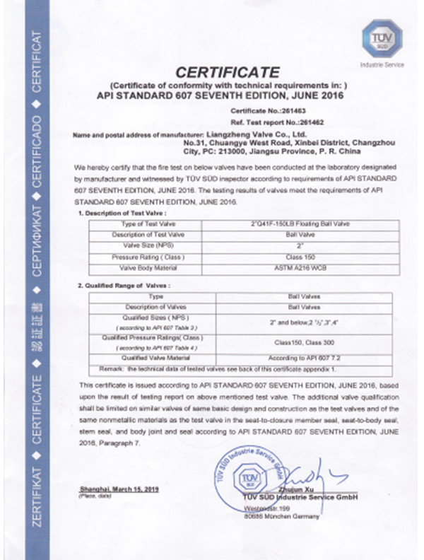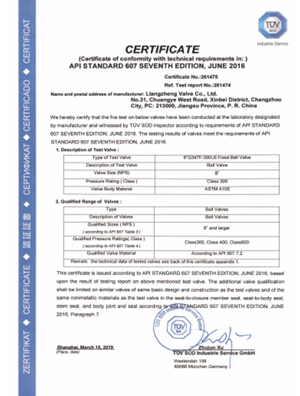 良正閥門均通過了”TS”特種設(shè)備制造許可A級(jí)認(rèn)證,API6D美國(guó)石油協(xié)會(huì)認(rèn)證,ISO9001國(guó)際質(zhì)量體系認(rèn)證,ISO14001環(huán)境體系認(rèn)證,ISO45001職業(yè)健康安全管理體系認(rèn)證,德國(guó)南德TUV頒發(fā)的API607防火認(rèn)證,SIL3安全評(píng)估證書,CE歐盟證書,兩化融合證書,知識(shí)產(chǎn)權(quán)貫標(biāo)證書,AA計(jì)量、AAA測(cè)量體系等證書。